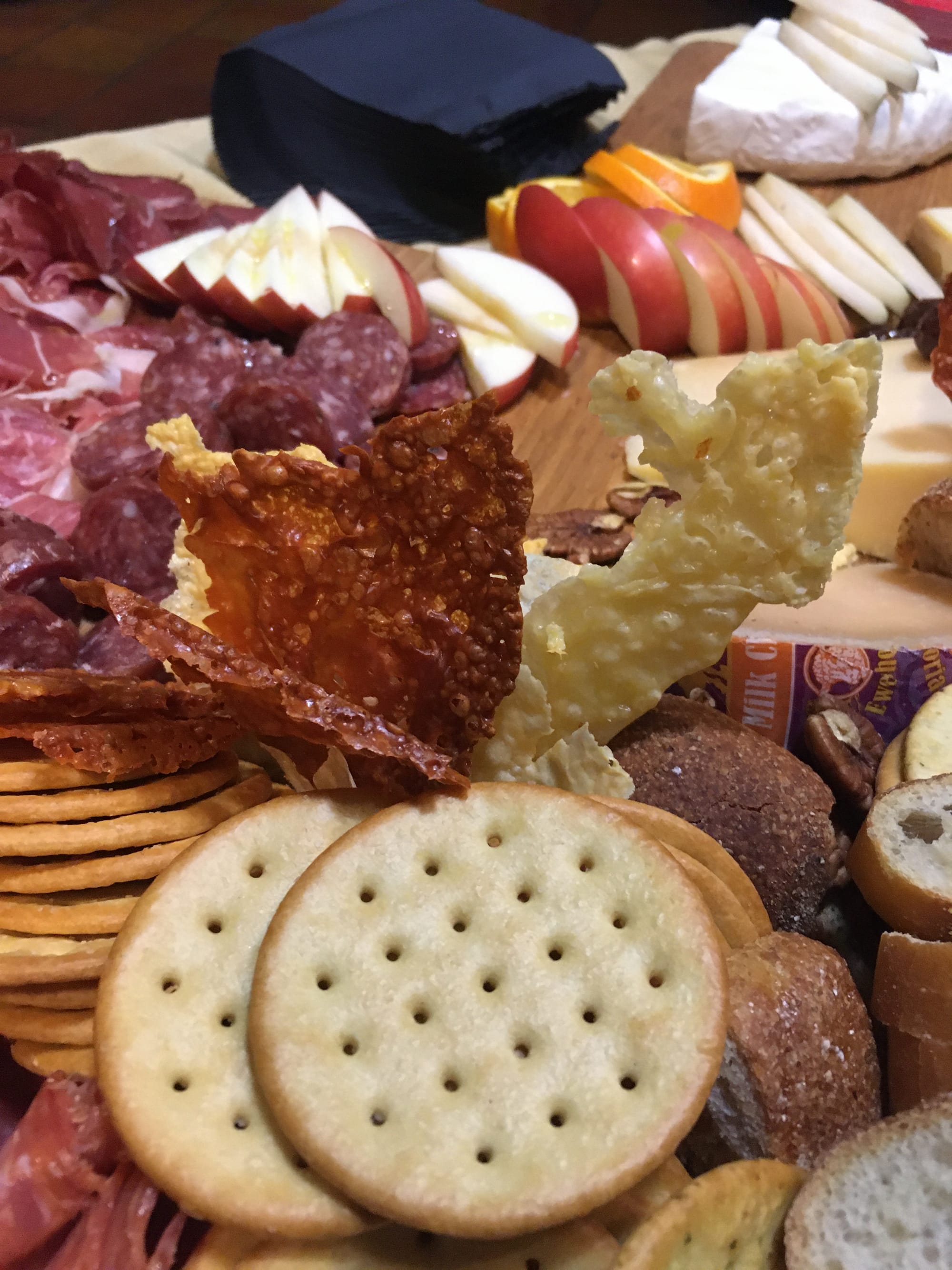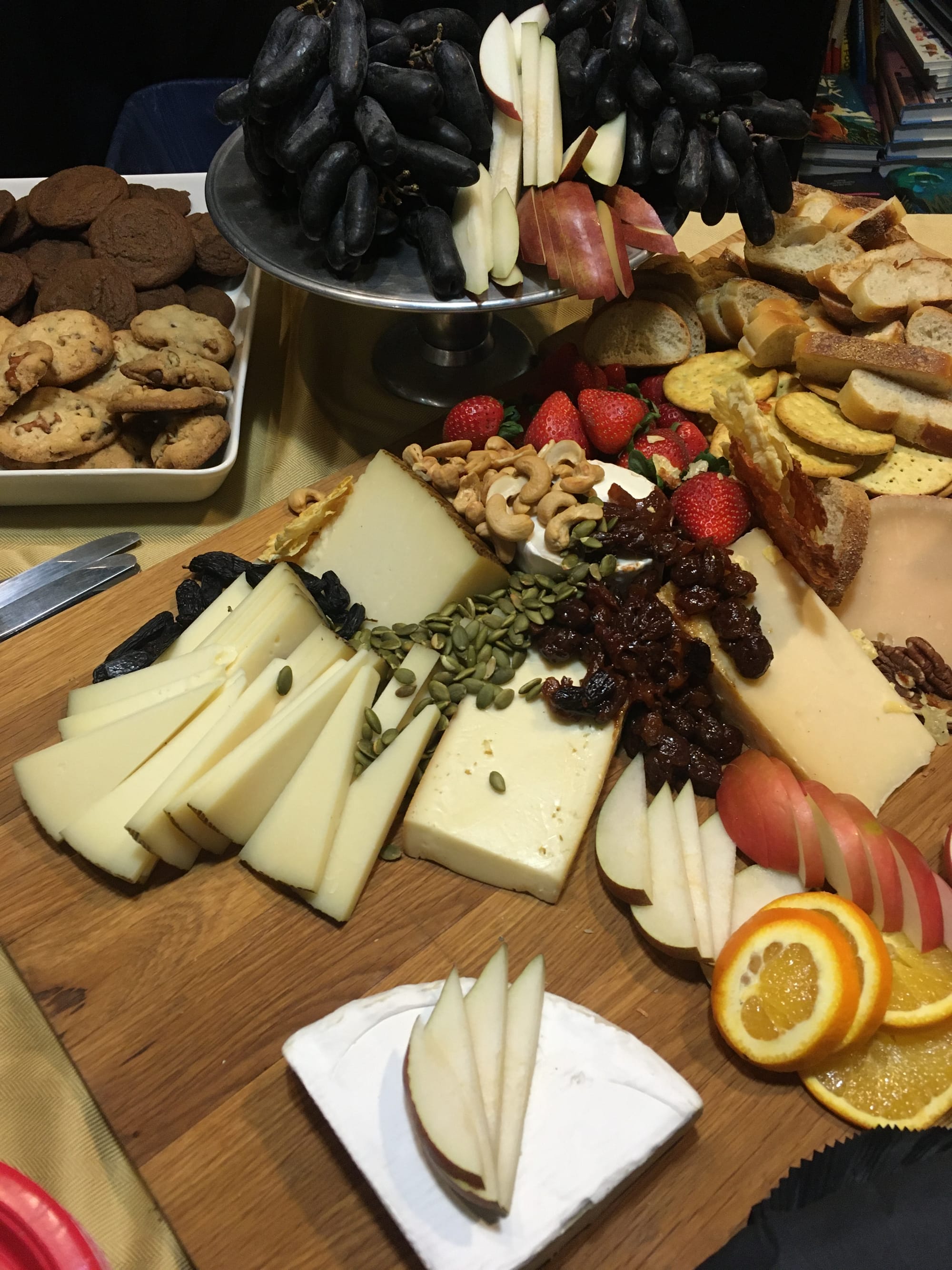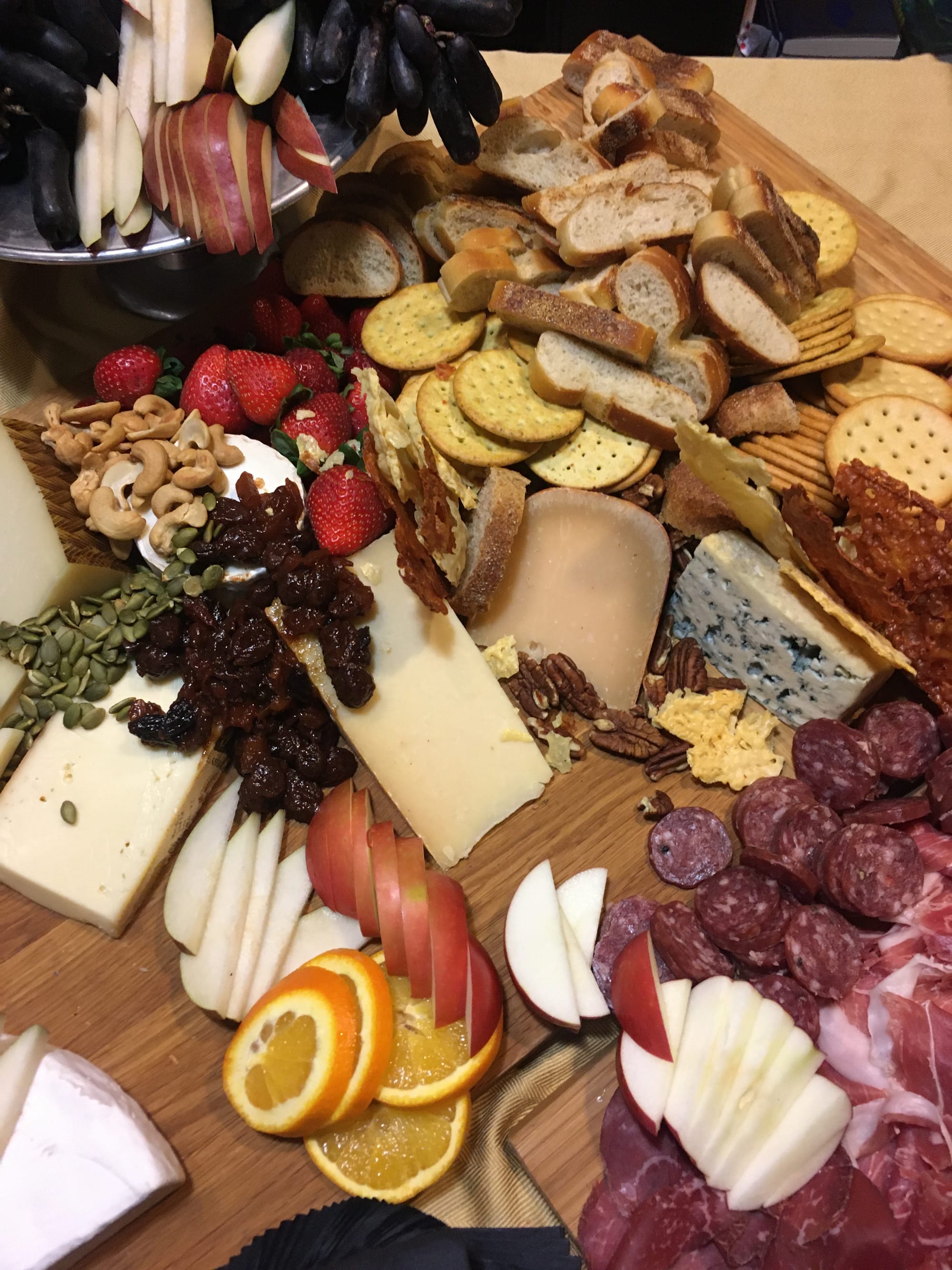 Our cheese and charcuterie graze featured dramatic moondrop grapes, manchego, brie, raclette, Ewephoria sheep gouda, prosciutto, parmesan crisps, bresaola, speck, salami, dried fruit, baguette, and crackers.