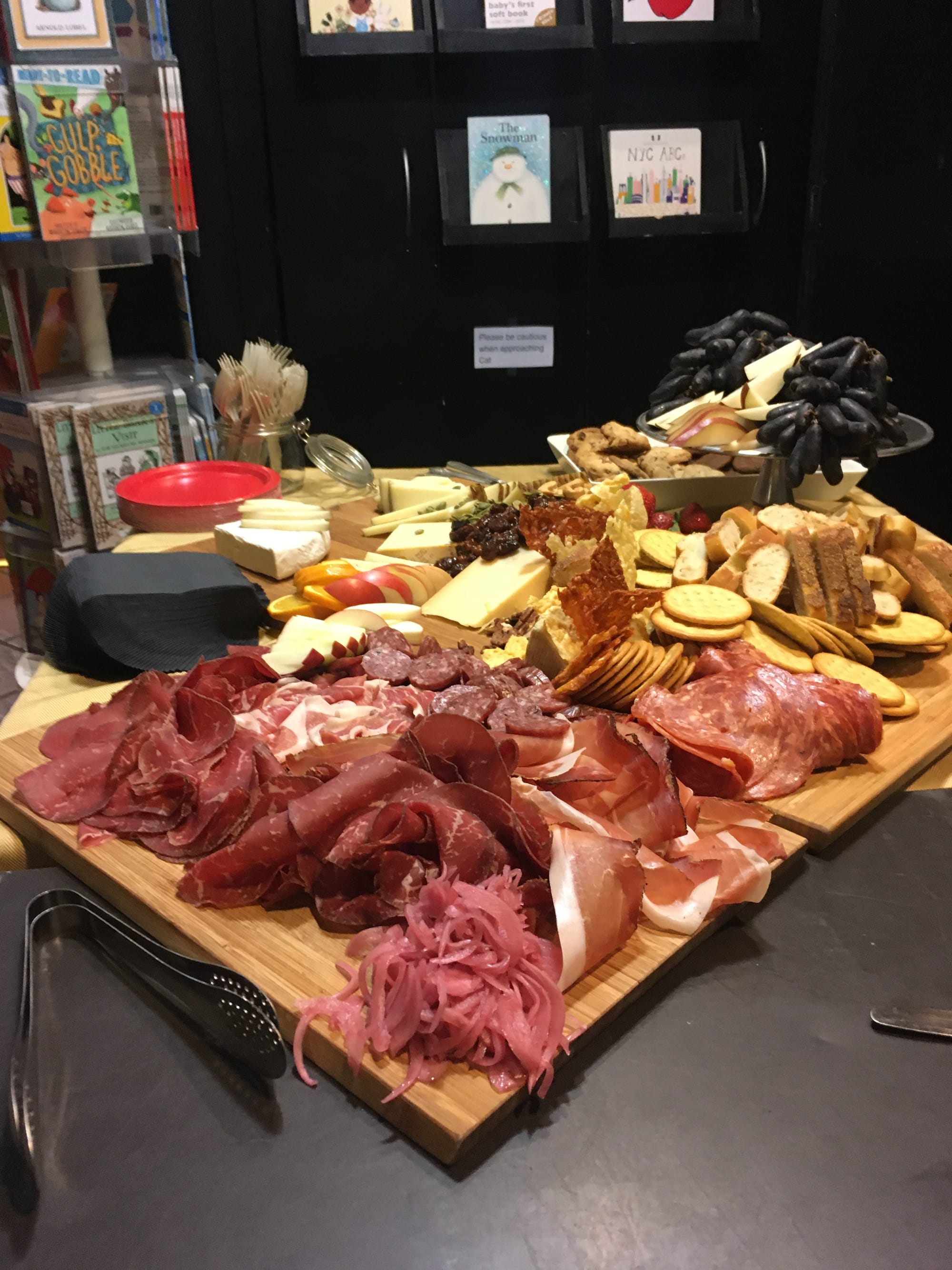 When you put together a mixed grazing table with cheese and meats, make sure you have enough tongs. You need a set for each "section" to avoid cross-contamination. As caterers, we always have a few more clean pairs stashed behind the scenes in case they get dropped on the ground or if they get too messy.