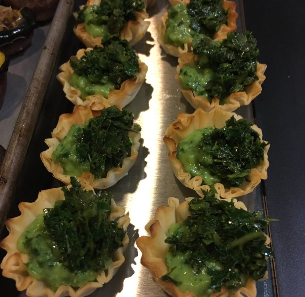 We warmed up vegan filo cups with a creamed kale filling and sauteed garlic kale on top. It was crispy, creamy, and savory!