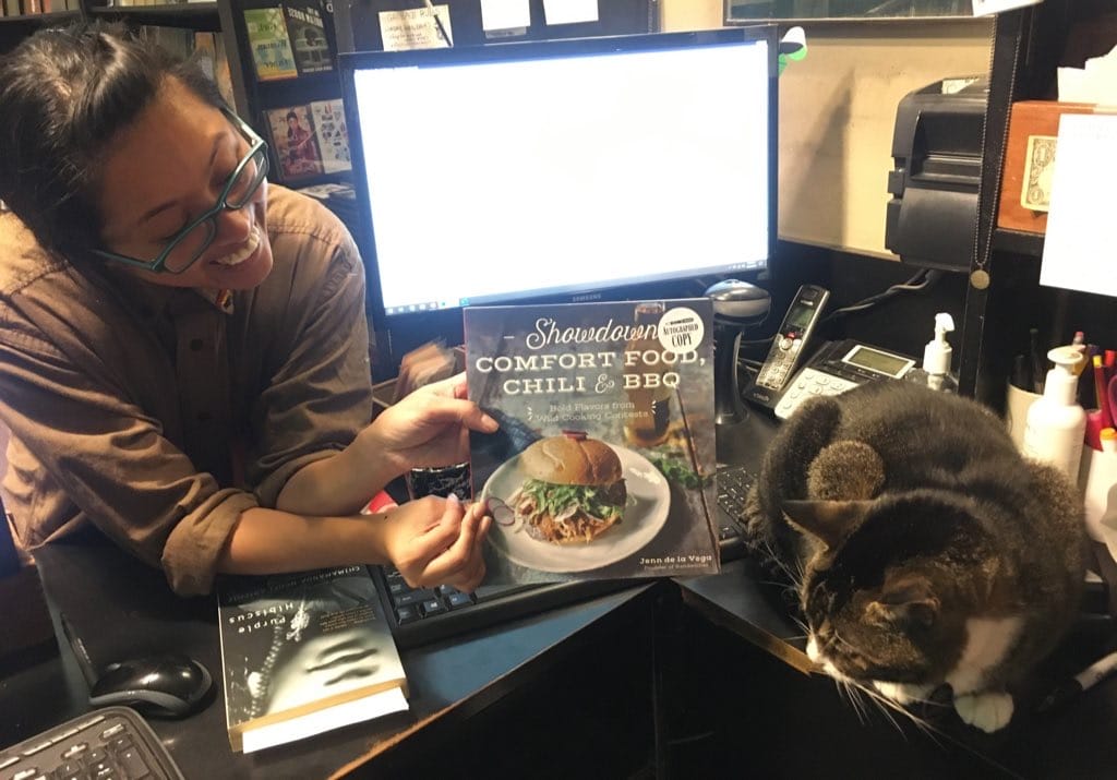 Prior to the pandemic, we had been invited to cater the Community Bookstore latke party in Park Slope. It’s a lovely little tradition with the staff to celebrate the end of the year. Be sure to support this independent bookshop by stopping by their shop in Park Slope, Brooklyn or by ordering your next book online from them. If you stop by, maybe you will see Tiny the Usurper (one of the more elusive staff members, pictured below).